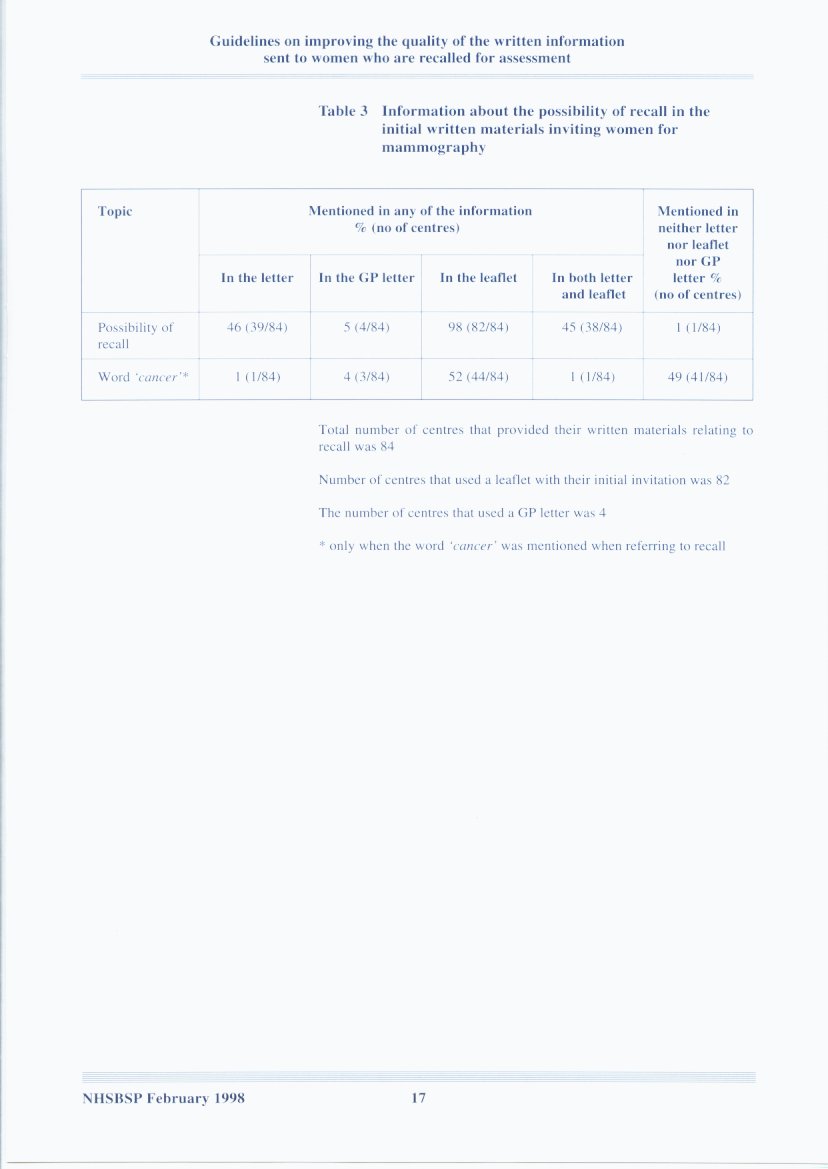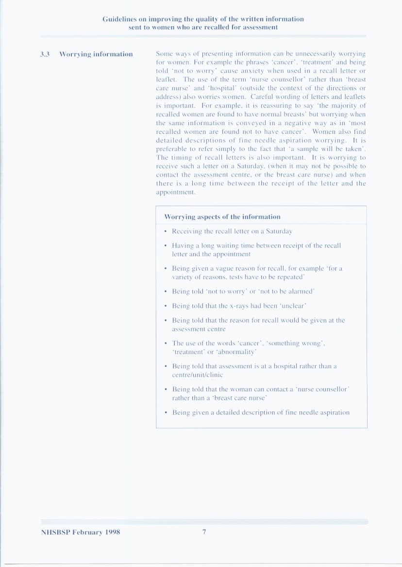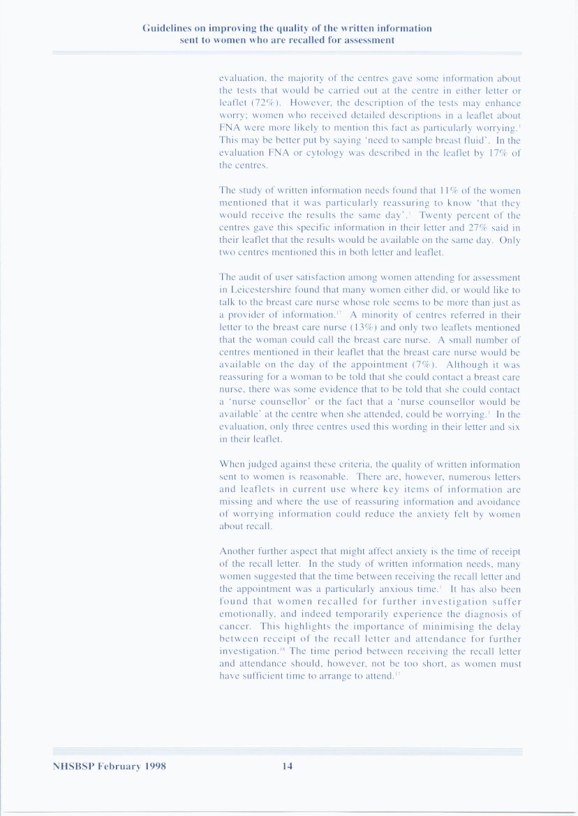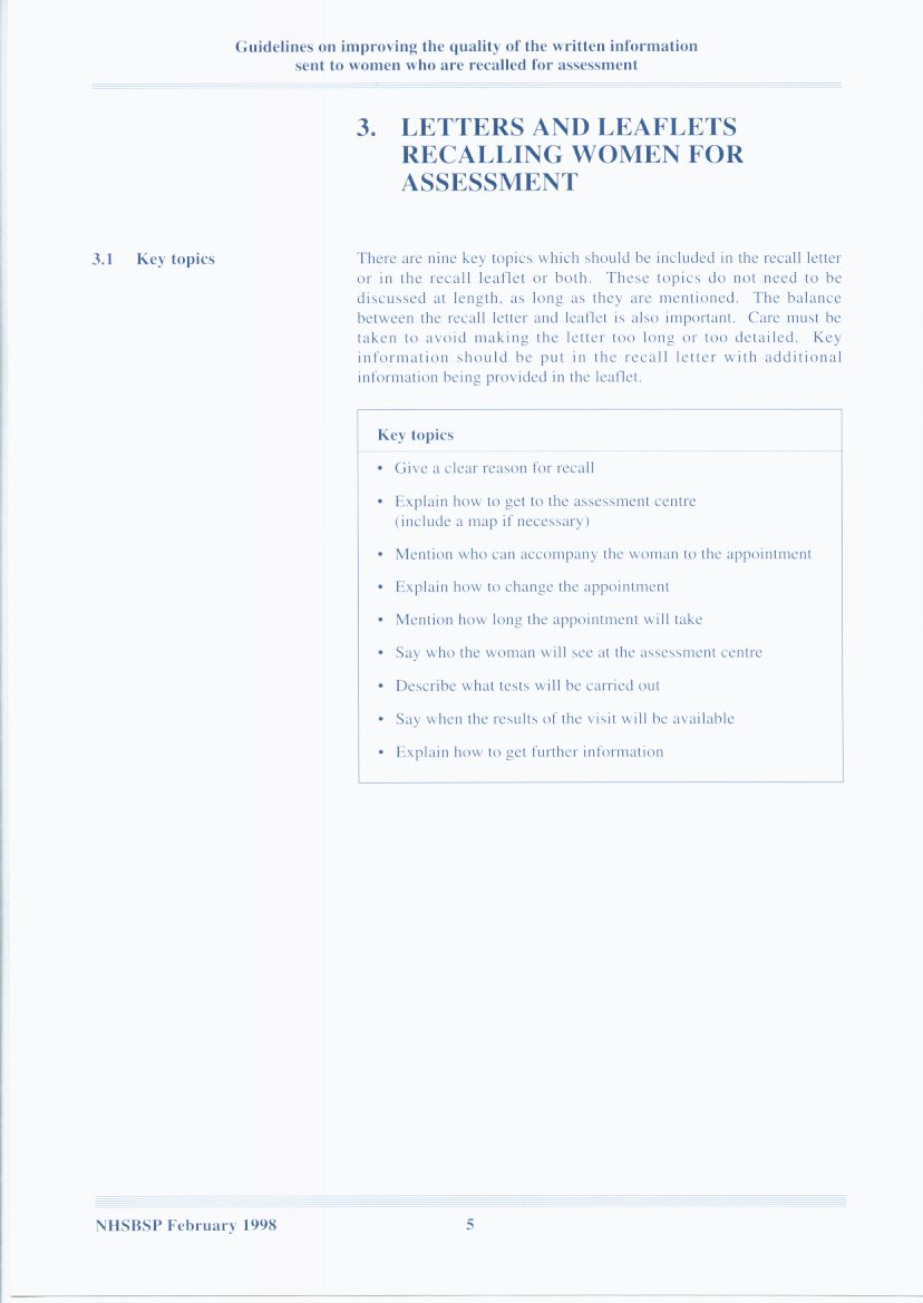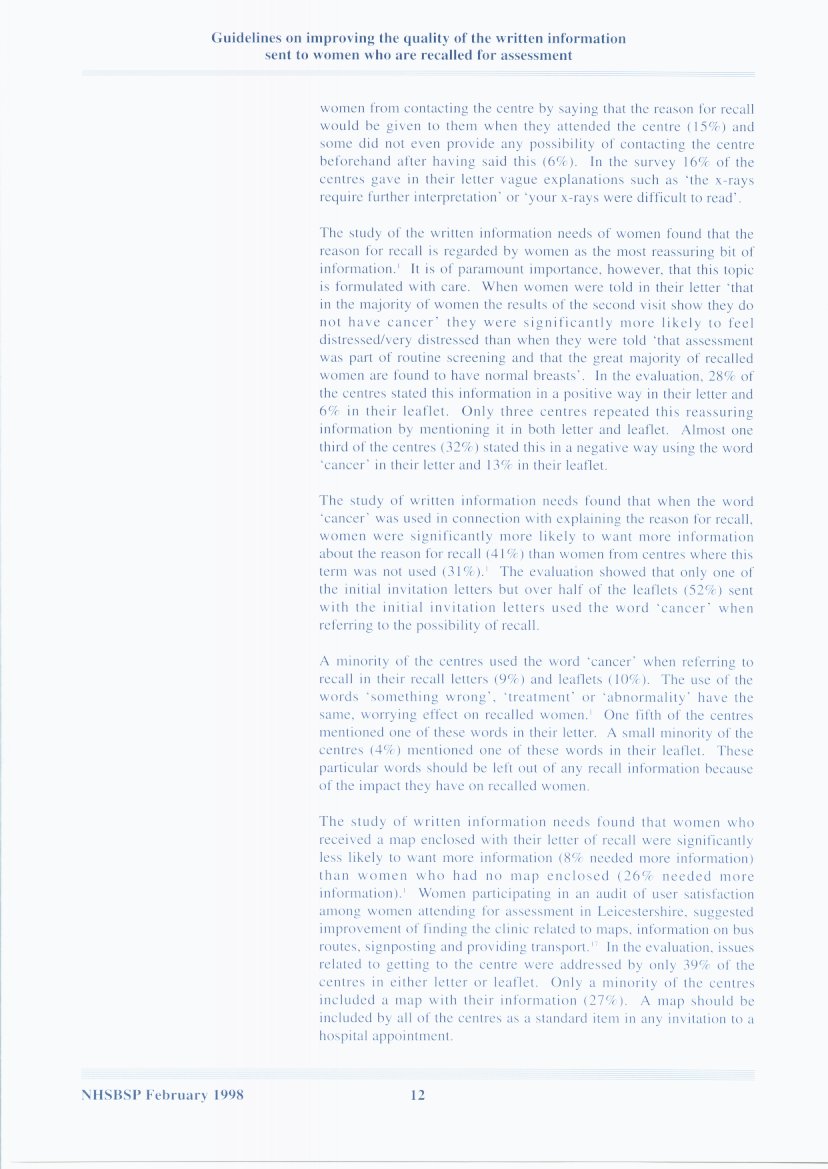Guidelines on improving quality of written information sent to women who are recalled for assessment |