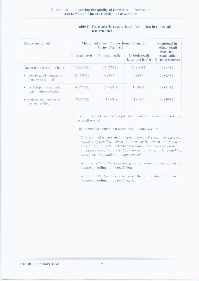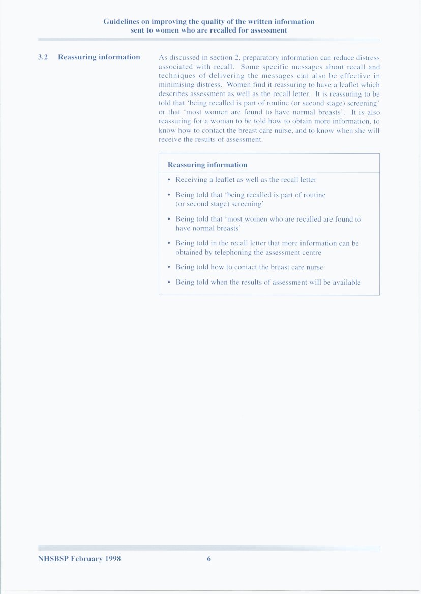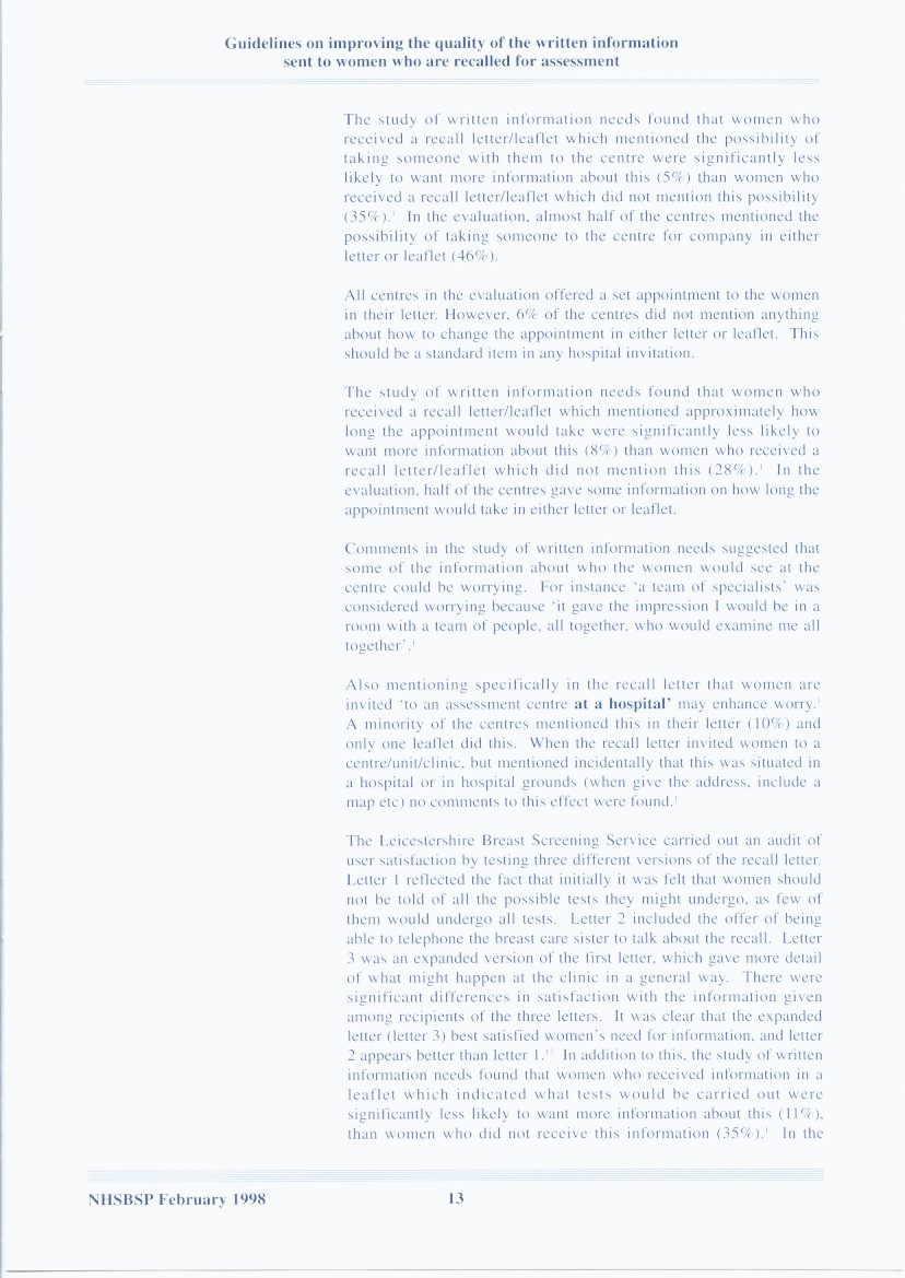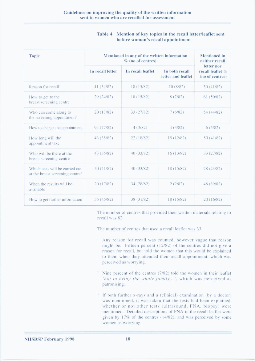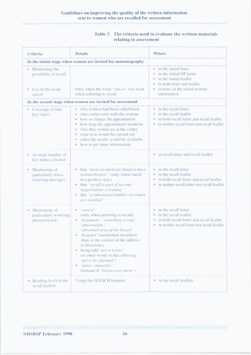 Guidelines on improving quality of written information sent to women who are recalled for assessment |