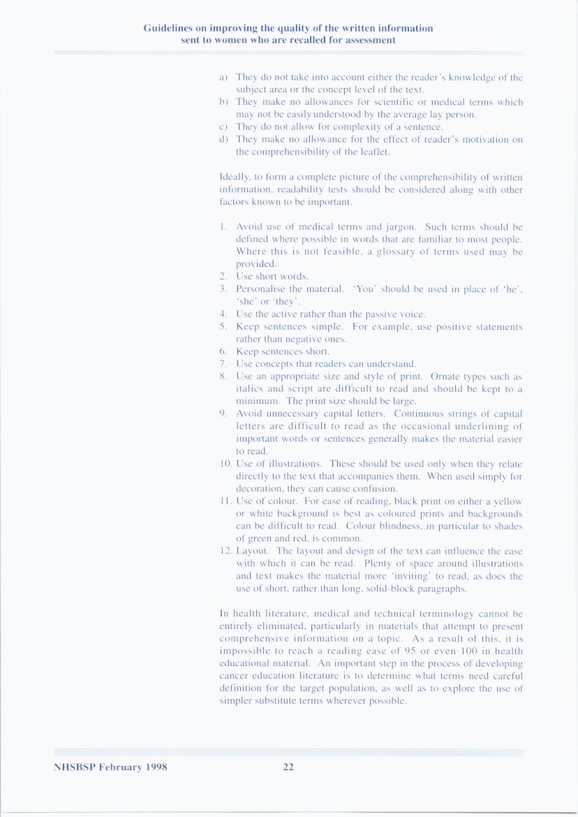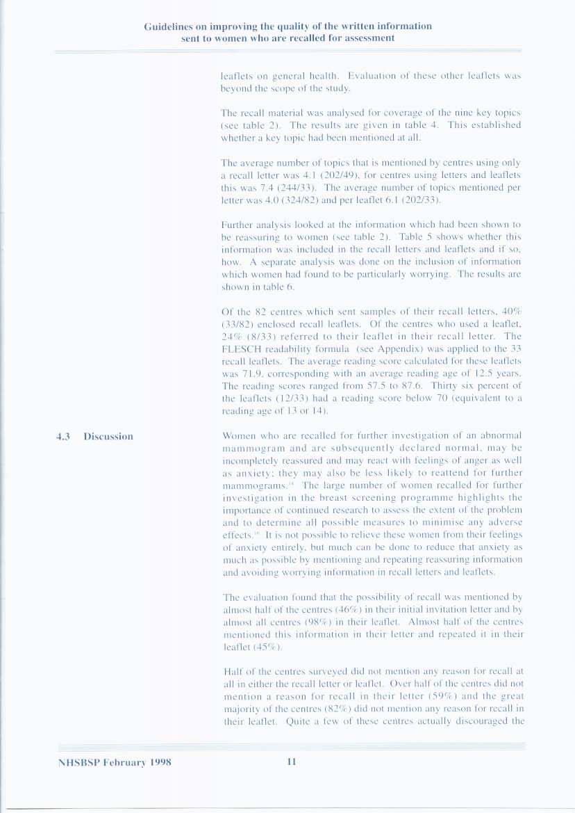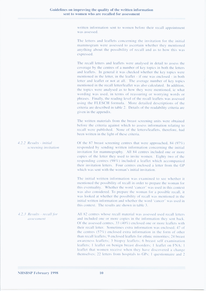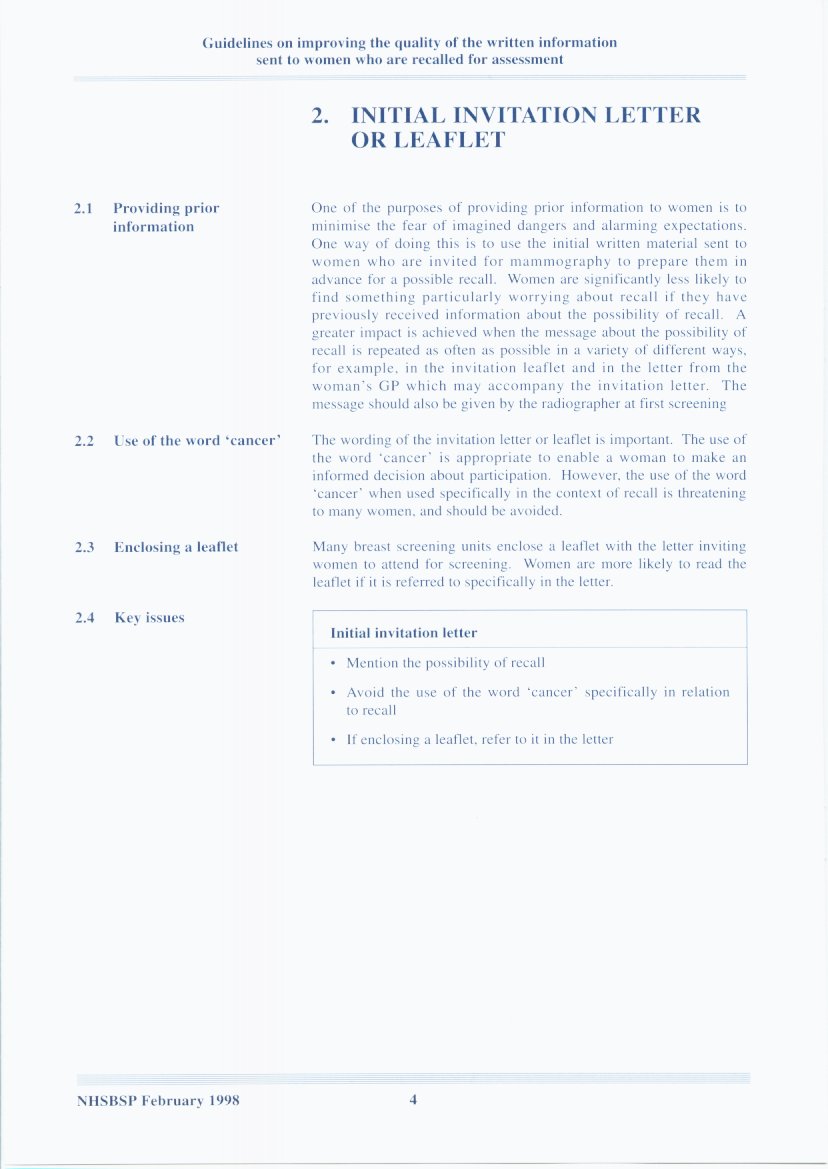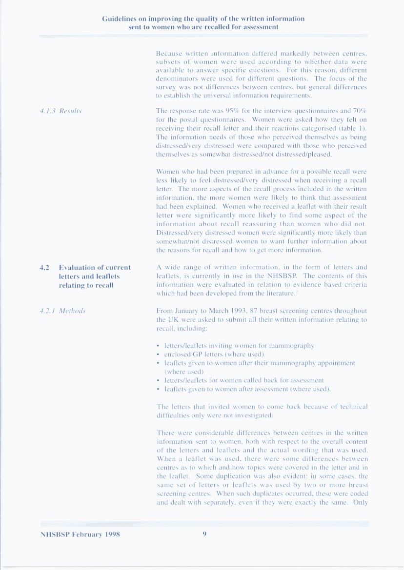 Guidelines on improving quality of written information sent to women who are recalled for assessment |