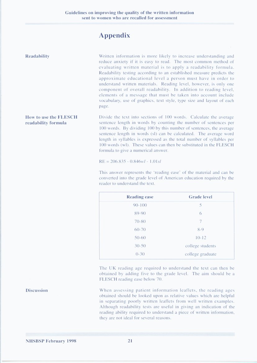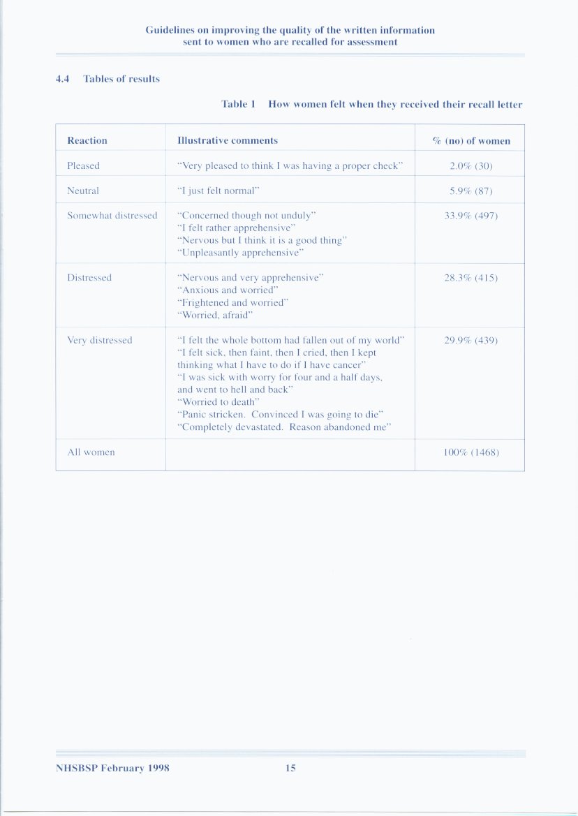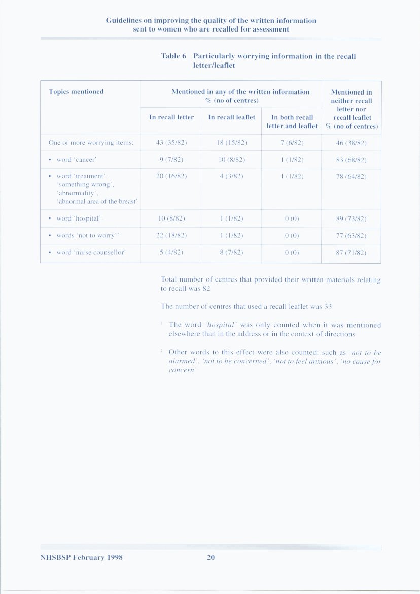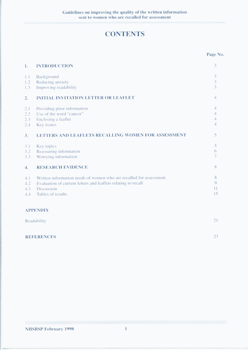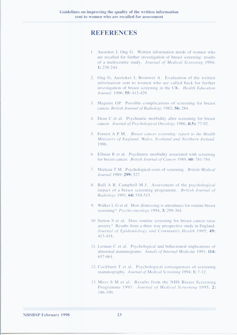 Guidelines on improving quality of written information sent to women who are recalled for assessment |